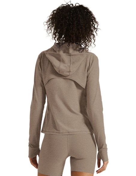 I’ve been looking for a functional and sophisticated hoodie for awhile. I’m so happy I discovered this high energy hoodie from Beyond Yoga. I ordered a size Large, I’m 5 feet 9 inches and 160 lbs with an athletic build. The hoodie fits perfectly, I love the feel of the spacedye fabric, the pockets and thumb holes are perfect. The color is neutral and pairs nicely with a majority of my wardrobe. Very happy customer, thank you BY.