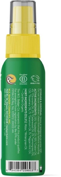 Keep mosquitoes at bay with the 2.7 fl. oz. Badger Anti-Bug Shake & Spray. This DEET-free spray smells fresh and clean with a woody citrus fragrance.