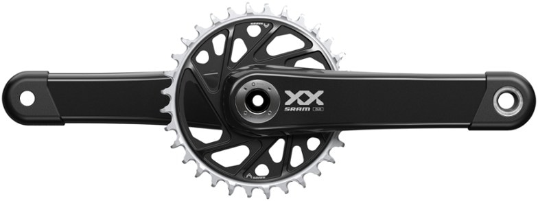 Featuring carbon fiber engineered with a foam core, the SRAM XX Eagle T-Type Wide crankset offers incredible strength and stiffness, and it comes with a removable and replaceable bash guard system.