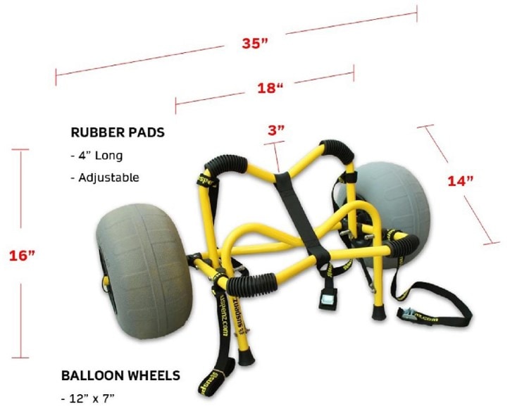 Made to glide over sandy beaches and securely hold your canoe or kayak, the Suspenz DLX Mid-V Beach Cart will help you get to and from the water with ease.