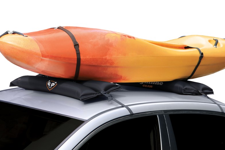 - Inflatable pads strap to your rack or roof so they don't shift during transport; boats strap to the inflatable pads for increased stability