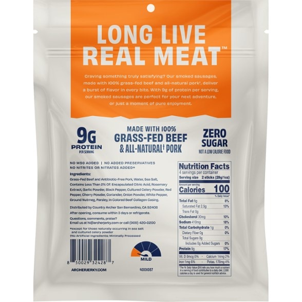Grab a bag of these mini-but-mighty Country Archer Jerky Co. Smoked Sausages for a hike or road trip—they're a tasty, protein-rich snack for wherever and whenever.