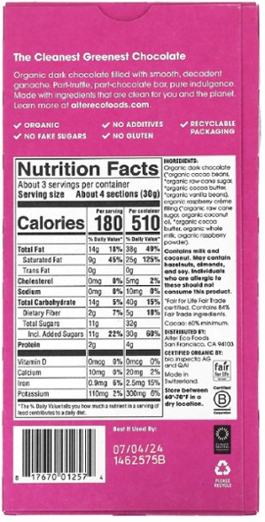 - Organic dark chocolate filled with smooth, decadent ganache