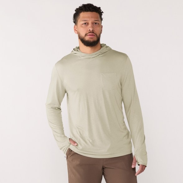 A lightweight layer built for long days on the water or on the trails, the men's Free Fly Lightweight hoodie is equipped with a crossover hood and thumbholes for ultimate all-day sun coverage.