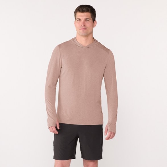 This is easily the most comfortable sun hoody I've worn. I've been using cheap polyester fishing hoodies from Amazon for almost a decade, and while they're fine for the money they are not that comfortable. Especially around the neck and upper arms during a long, sweaty hike. I decided it was time to invest in a better quality sun hoody, because I strongly dislike sunscreen and the cheap Amazon ones are uncomfortable for summer hiking. I went to my local store and tried sun hoodies from REI Co-op, The North Face, Patagonia, and Columbia in both Medium and Large sizes. Free Fly was easily the most comfortable in the Large size. The hood was slightly loose, comfortable, but didn't drape over my eyes or fall off easily. It has the perfect amount of hold under a baseball cap without feeling tight. The thumb holes were in the perfect spot and you forget you're using them. A week after purchasing, I used this every day for a week in Maui. It was great for direct sun and not too hot for temperatures in the mid-80s. I've been wearing this off-and-on for the last 6 months depending upon the hike, and I'm shocked how well the soft material is holding up. It feels like luxury underwear, but there is no visible abrasion from thorns or my backpack shoulder straps. For some of the other brands, the Medium was way too tight and the Large felt like a poncho. REI had the worst hood and fabric by far. Way too much material around the neck, almost as if it came with a gaiter. I don't know what they were thinking with that design. The North Face felt nice but the hood was comically big in the Large in an otherwise well fitting hoody.