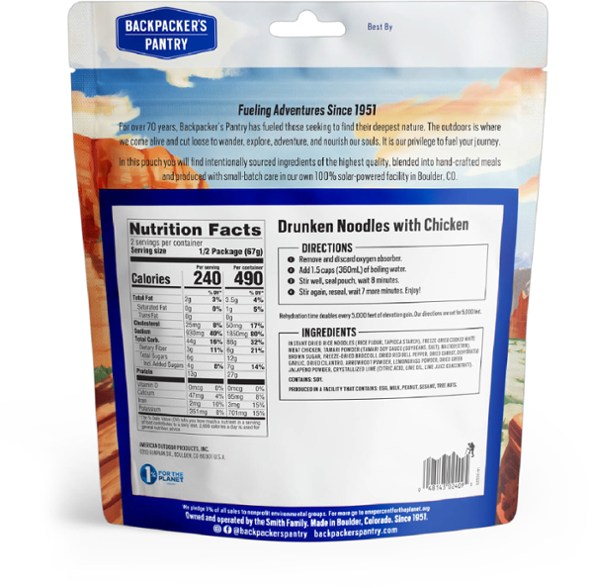 Dinner in the backcountry doesn't have to be bland. Treat your tastebuds with the Backpacker's Pantry Drunken Noodles With Chicken for a sweet and spicy meal you'll look forward to all day.