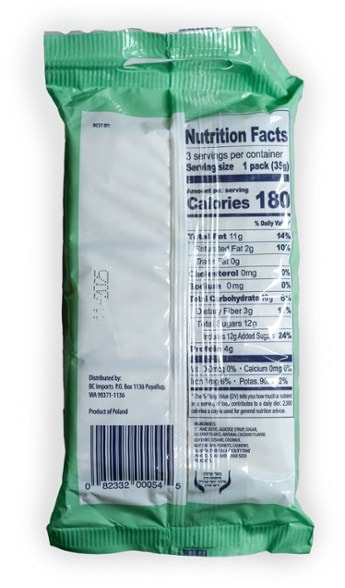 These are really tasty and just enough for a snack. There are 3 small packages in a serving in the pack