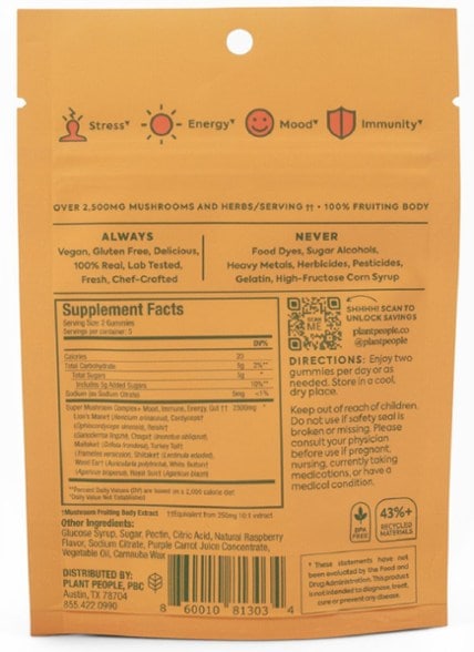 Plant People WonderDay Mushroom Gummies - 5 Servings