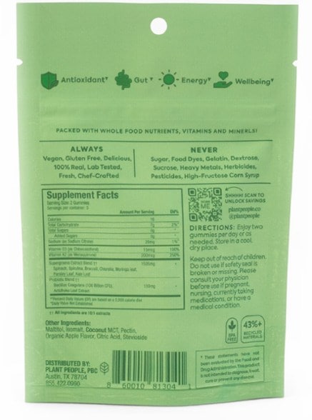 Made with a blend of nutrient-dense ingredients and probiotics, the Plant People WonderGreens Veggie Gummies are designed to support well-being, nutrition, energy and gut health.