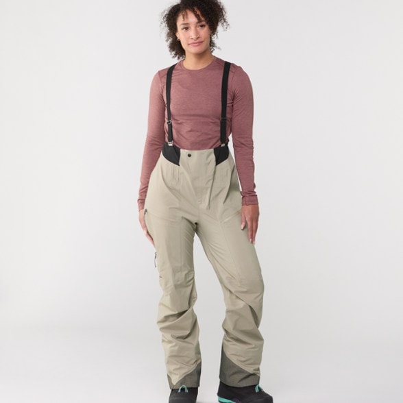 For storm protection that won't cramp your stride, the women's Patagonia Untracked Bib pants are made with a soft knit interior backer and stretch-mesh panels to help manage moisture on the skintrack.