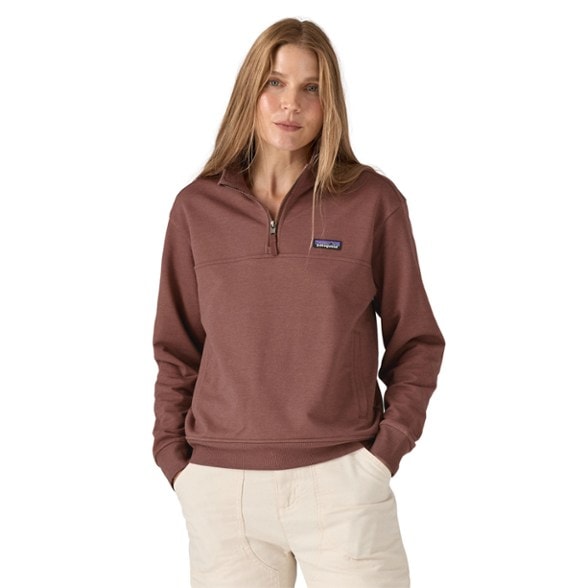 Built from a soft organic cotton blend with a touch of spandex, the women's Patagonia Ahnya quarter-zip pullover stretches and recovers for a comfortable fit wear after wear.