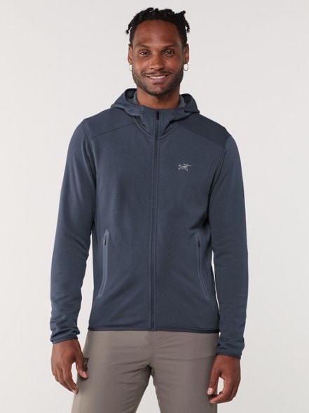 A go-to fleece for trail, rock, snow and camp, the men's Arc'teryx Kyanite Hoody delivers warmth as a standalone or mid layer thanks to its breathable, abrasion-resistant face and brushed interior.