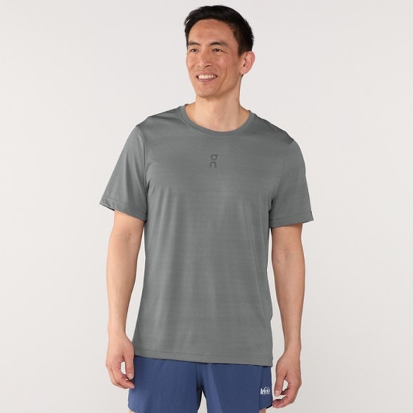 With its versatile silhouette, regular fit and sweat-wicking fabric, the men's On Trail-T shirt can easily go from trail to town, so you can seamlessly transition from workout to hangout.