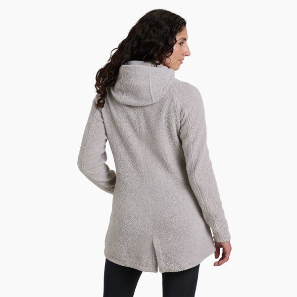 Heritage accent trim completes the mountain aesthetic of the women's KUHL Hygge Long jacket while its melange sherpa fleece and extended silhouette makes it a go-to for cozy winter nights.