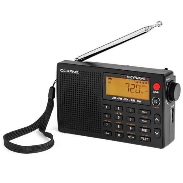 The ultimate portable pocket radio for travel, the C Crane Skywave 2 receives all AM, FM and shortwave bands worldwide, as well as NOAA Weather Radio + Alerts and aviation band spectra.
