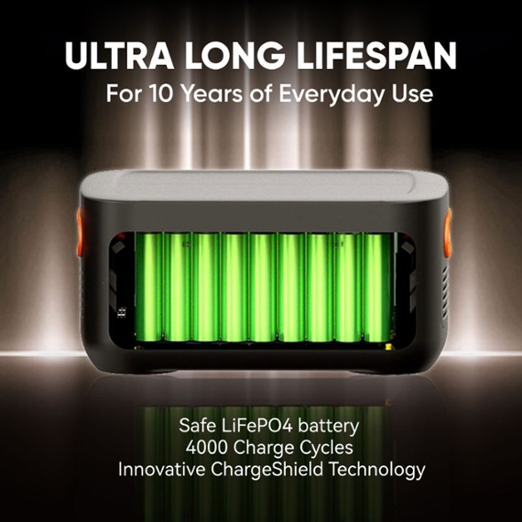 - Durable lithium iron phosphate battery (LiFePO4)