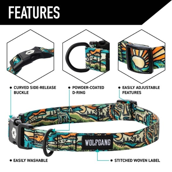 Set off into the wild—or out for a stroll around the block. With the Wolfgang Man & Beast WildWolf collar, your best buddy will be adventure-ready for all your walks, hikes and around-town excursions.