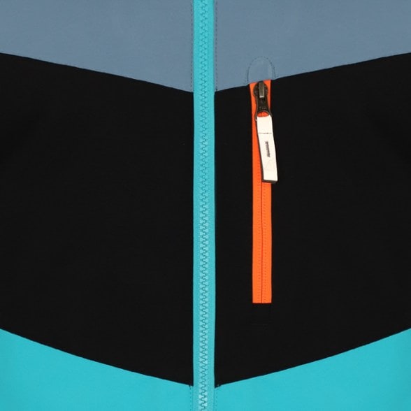 - Zippered hand pockets; zippered chest pocket; zippered sleeve pass pocket