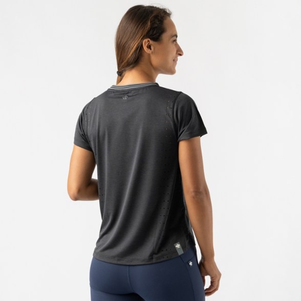 From training to race day, the women's rabbit Race Pace T-shirt makes your run feel breezy thanks to its semi-relaxed fit and laser-cut perforations that allow sweet, cooling airflow.