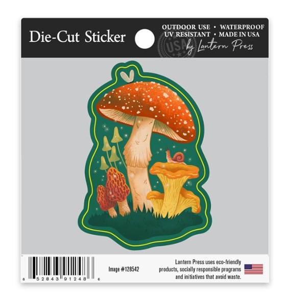 Die-cut and ready for outdoor use, the Lantern Press Mushroom Cluster sticker attaches to your water bottle, laptop, cooler, car or canoe—wherever you want these fungi to grow.