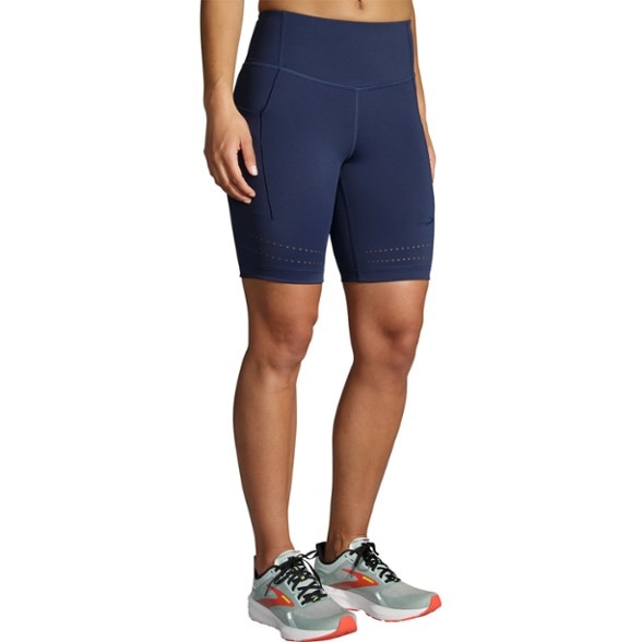 Perfected with a semicompressive fit that sits higher at the waist, the women's Brooks Method 8 in. short tights offer the support you need to keep going hard in smooth, sweat-wicking material.