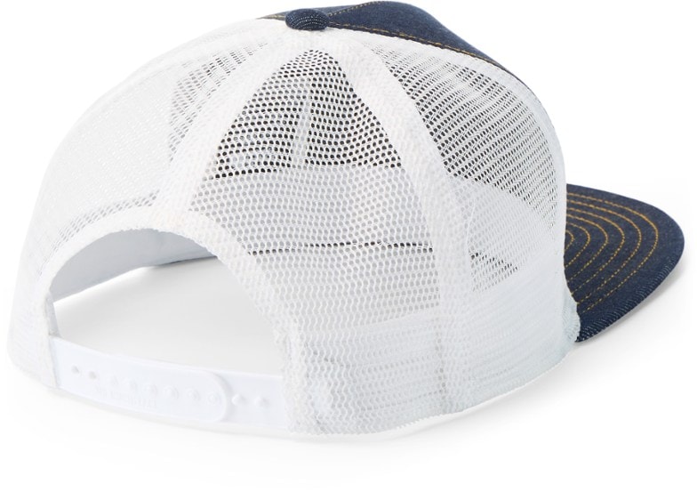 | Fabric | Front panels and brim: 100% cotton (canvas or denim); back panel: 100% recycled polyester mesh; sweatband: 80% recycled polyester/20% recycled cotton |
