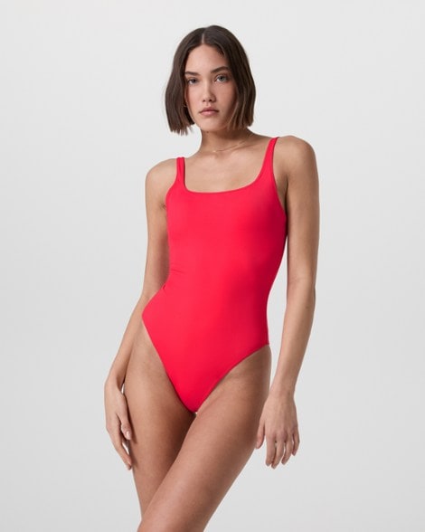 Ready for a sun-soaked summer, the women's Vuori Encinitas one-piece swimsuit has retro details like a squared U-shape neckline, low scoop back and a higher leg cut for maximum mobility.