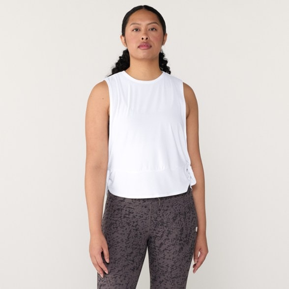 With twist side details and deep armholes, the women's Beyond Yoga Featherweight Side Note tank top works just as well over a bra for morning yoga as it does over jumpsuits for afternoon errands.
