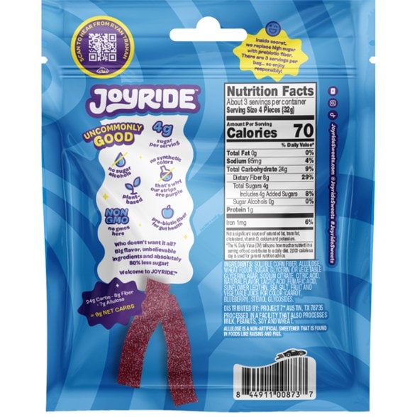 The perfect on-trail snack or afternoon pick me up, the JOYRIDE Low Sugar Sour Strips pack a sour, fruity punch without the sugar crash, with only 4 grams of sugar and 70 calories per serving.