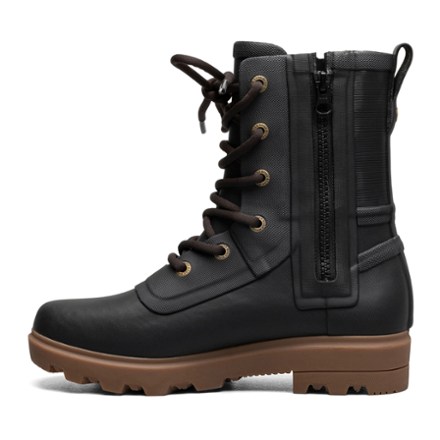 Bogs never miss when it comes to heel/bottom of the foot comfort. So squishy, but supportive. These remind me of combat boots but are waterproof all the way up. I'm not always a big fan of having to tie these kinds of boots, so I love the zipper. They did feel a little tight/stiff on the top of my foot when I first wore them, but playing with the tightness did seem to help a little. Fairly true to size, maybe a little bit big.