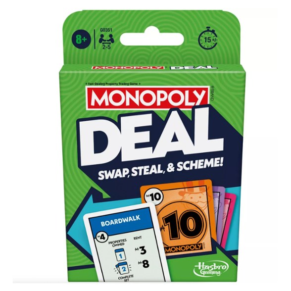 Easy to set up and play, Blue Orange Monopoly Deal packs all the fun of your favorite board game into a travel-friendly size that's great for road trips, family vacations and camping adventures.