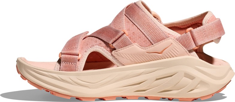 Equipped with legendary cushioning, the women's HOKA Infini Hike TC sandals are your open-toe, all-terrain adventure buddies. Spongy Ariaprene® uppers and quick-dry straps top dual-density midsoles.