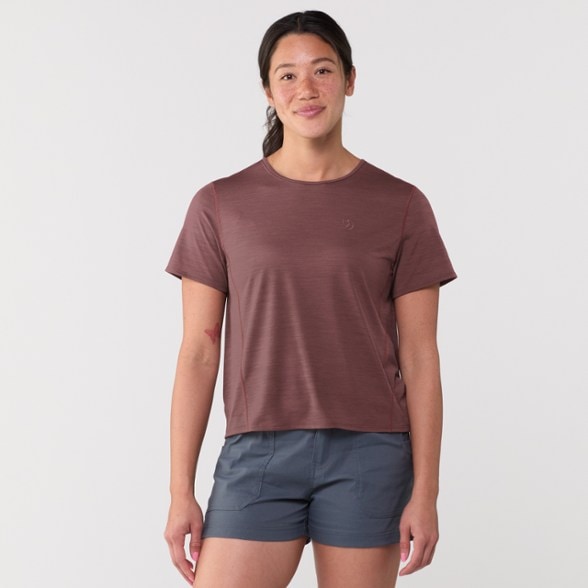 Perfect for warm-weather activities on the trails or town, the women's Fjallraven Abisko Lite T-shirt has a slightly shorter cut and light, airy fabric so nothing will get in the way of your hike.