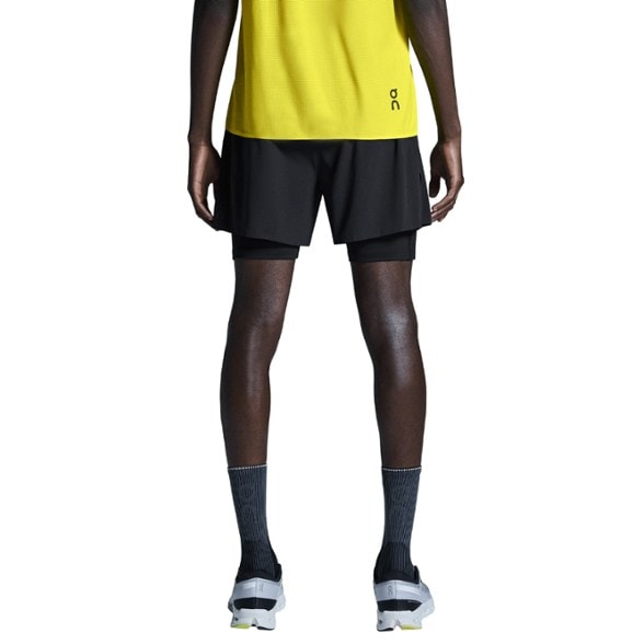 Movement feels good with the men's On 5 in. Performance 2-in-1 shorts. They pair lightweight, 4-way stretch outer shorts with invisible-feel inner tights that are fast drying to wick away sweat.