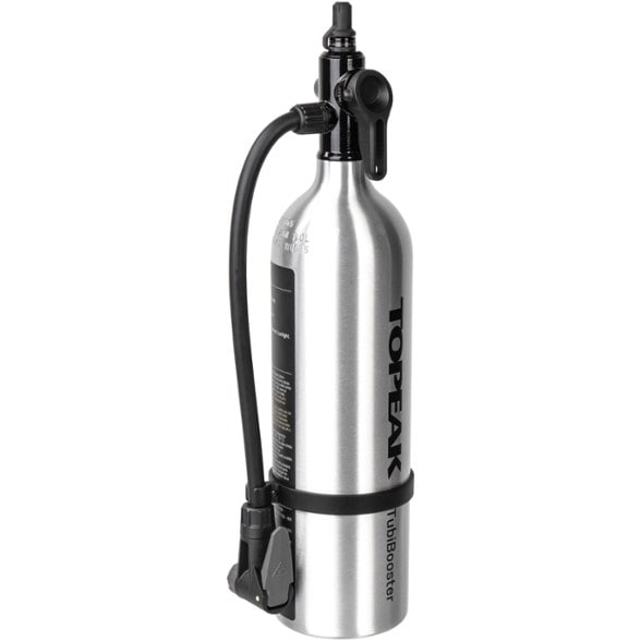 Working with your floor plump to quickly fill your tires, the TubiBooster X 2-in-1 tubeless tire charger is an aluminum air chamber with an inflator head that stores a 1-liter air charge.