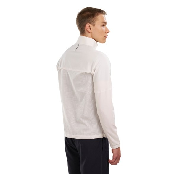 Stay cool on your run with the men's ALWRLD ALRN Crest jacket. Without a hot liner or stuffy fabric—just well-placed ventilating perforations for breathability—its a comfortable 3-season layer.