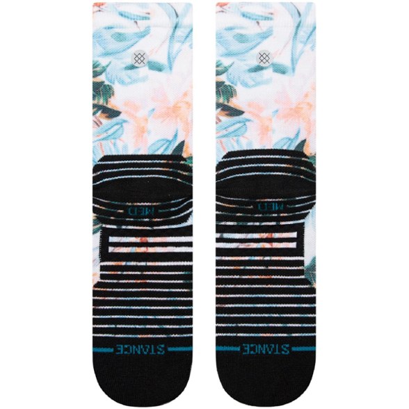 Step into comfort and performance with Stance Flowerful crew socks, offering Athletic-Mid cushioning and breathable mesh. Arch support fights fatigue, while Infiknit durability ensures lasting wear.