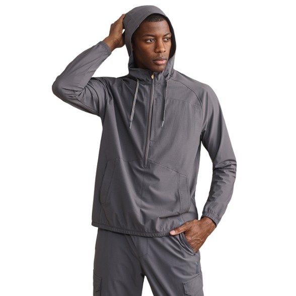 Combining technical details with exceptional softness, this water-repelling, tear-resistant RHONE Invictus Ripstop anorak for men delivers high-impact stretch and breathability to outdoor workouts.