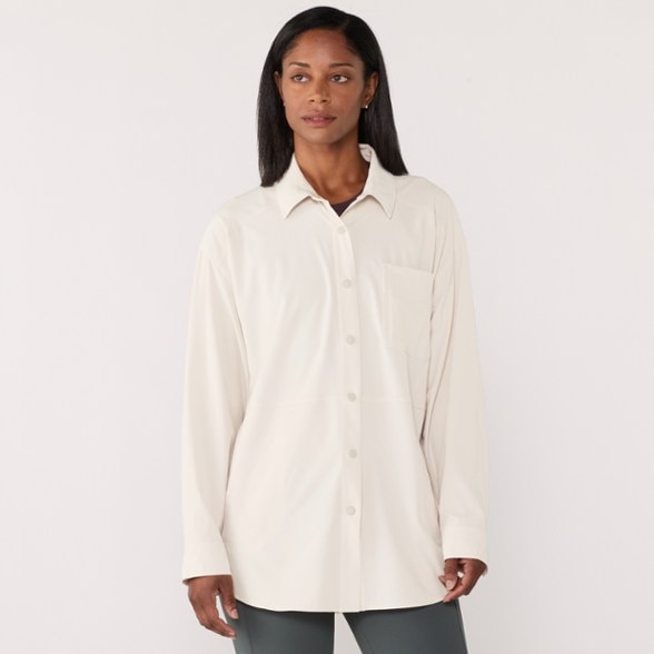 Made with lightweight, wrinkle-resistant fabric that's ideal for travel, the women's prAna Railay Oversize Button-Down shirt is great for jet-setting to distant locales or just hanging out at home.
