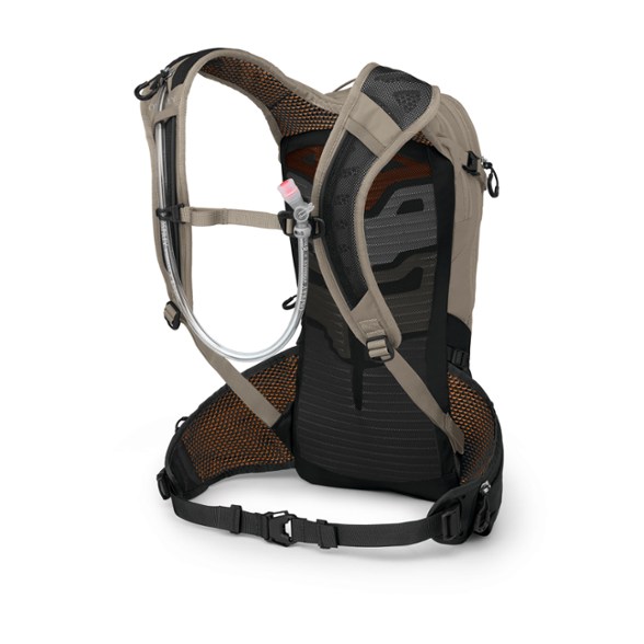 Ride all day with the men's Osprey Raptor 10 hydration pack. Winged shoulder harness and air-mesh wrap hipbelt keep the pack stable and secure, and hipbelt pockets offer easy access to snacks.