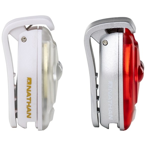 Compact and super lightweight, this set of 2 Nathan HyperBrite Mini clip-on strobe lights ensures drivers will see you both coming and going. Designed for easy use, they clip anywhere securely.