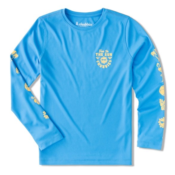 With the lightweight, breathable coverage of the kids' Chubbies Sun Crewneck rashguard, they can take on sun-scorching days on the water and feel comfortable from sun up to sun down.