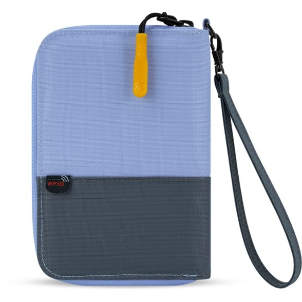 Good wallet with a slim profile. Enough internal pockets to be used as a regular wallet. I am not a big fan od the periwinkle color, as I feel it will appear dirty very quickly. Easy zipper, nice RFID blocker as well!