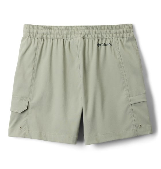 Crafted from a durable stretch fabric that dries fast and repels water and stains, the kids' Columbia Tech Trail Utility shorts have multiple pockets and a comfortable drawcord waist.