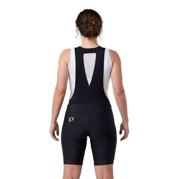 Finely tuned for pedal-powered adventures, the women's PEARL iZUMi Expedition cycling bib shorts have a comfortable soft nylon raw-edge bib upper plus 2 pockets for your on-bike essentials.