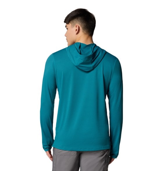 Built for the trail, this men's Columbia Tech Trail Utility hoodie features a lightweight and stretchy fabric that wicks moisture and provides UPF 50 shade from the sun.