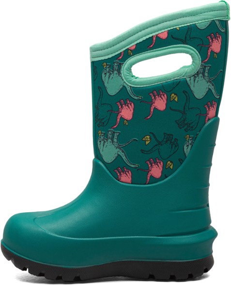 Built lightweight for higher jumps and 100% waterproof for bigger splashes, the kids' Bogs Neo-Classic Good Dino rain boots are easy to pull on as soon as the storm rolls in.