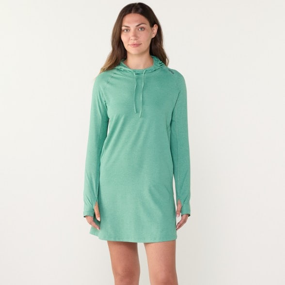 Breezy like your favorite sarong but with the full-coverage protection of a hooded sun shirt, the women's NRS Silkweight Hoodie dress easily transitions from the beach to boat.