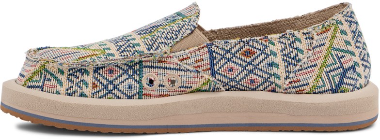 Inspired by granny's crazy, colorful quilts and the funky prairie styles of the '70s, the women's Sanuk Donna ST Patchwork shoes blend retro cool with cushy comfort for all-day wear.