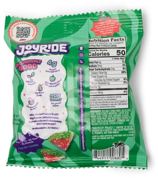 Love these! Great ingredients, amazing fiber source, and remind me of the sour patch watermelon candy. Will definitely buy these and the sour gummy bears again. Want to try gummy worms next.